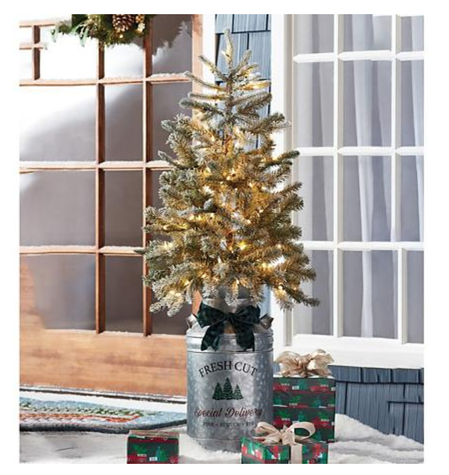 5 Foot Pre Lit Topiary Christmas Tree In Plastic Barrel